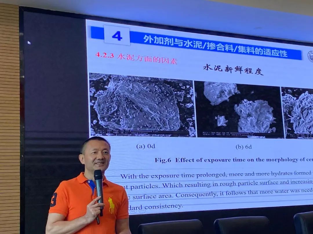 北京砼享未來(lái)工程技術(shù)研究院核心專家孫振平教授做了《聚羧酸系減少劑在預(yù)拌混凝土中應(yīng)用技術(shù)及不良現(xiàn)象解析、注意事項(xiàng)》的精彩課程。