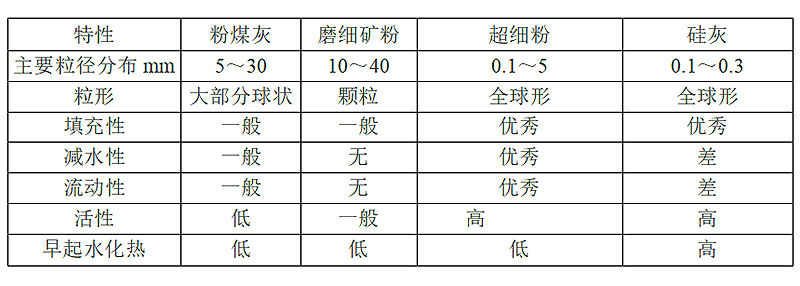 超細粉為配制高性能混凝土提供了一種全新的、簡潔、有效的選擇,是一種近乎完美的礦物微集料?!俺毞邸?在混凝土中的應用特性如下表。